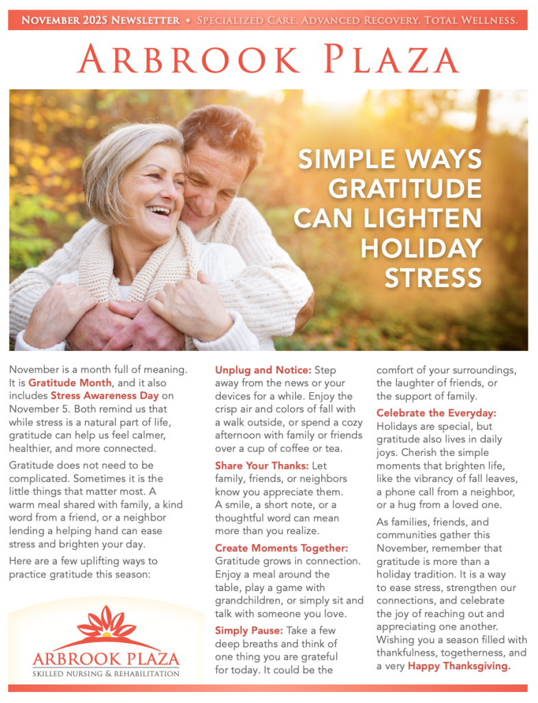 See the latest news and happenings at Arbrook Plaza Skilled Nursing & Rehabilitation here in Arlington.